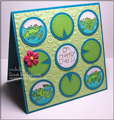 The other day one of my girlfriends brought over Henry's birthday gift and Jack's new baby gift. She bought Henry a huge book of stories and got two super cute frog outfits for Jack. :o) I needed to make a thank you card for her, and this is the card I came up with (I don't think she reads my blog regularly, so let's hope I'm right!).